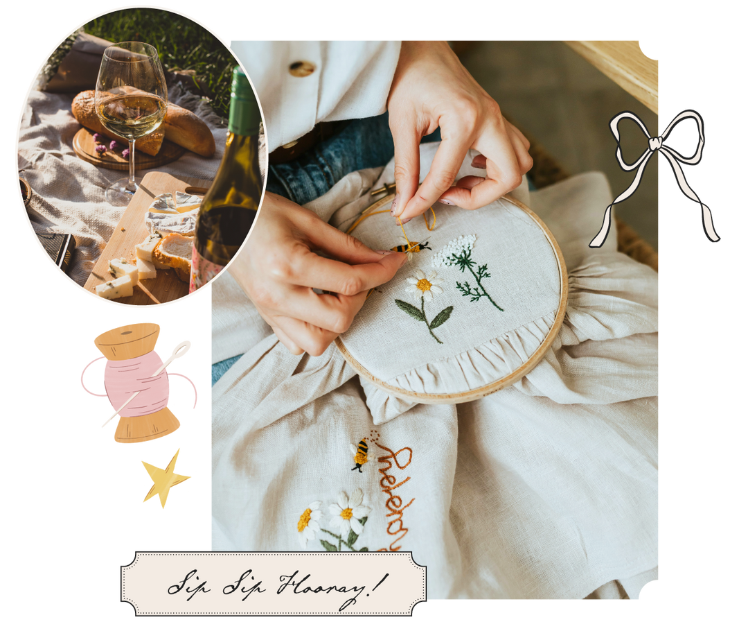 Gather your friends for a personalized Sip & Embroider Party where you'll sample a selection of tasty wines and learn the art of embroidery.